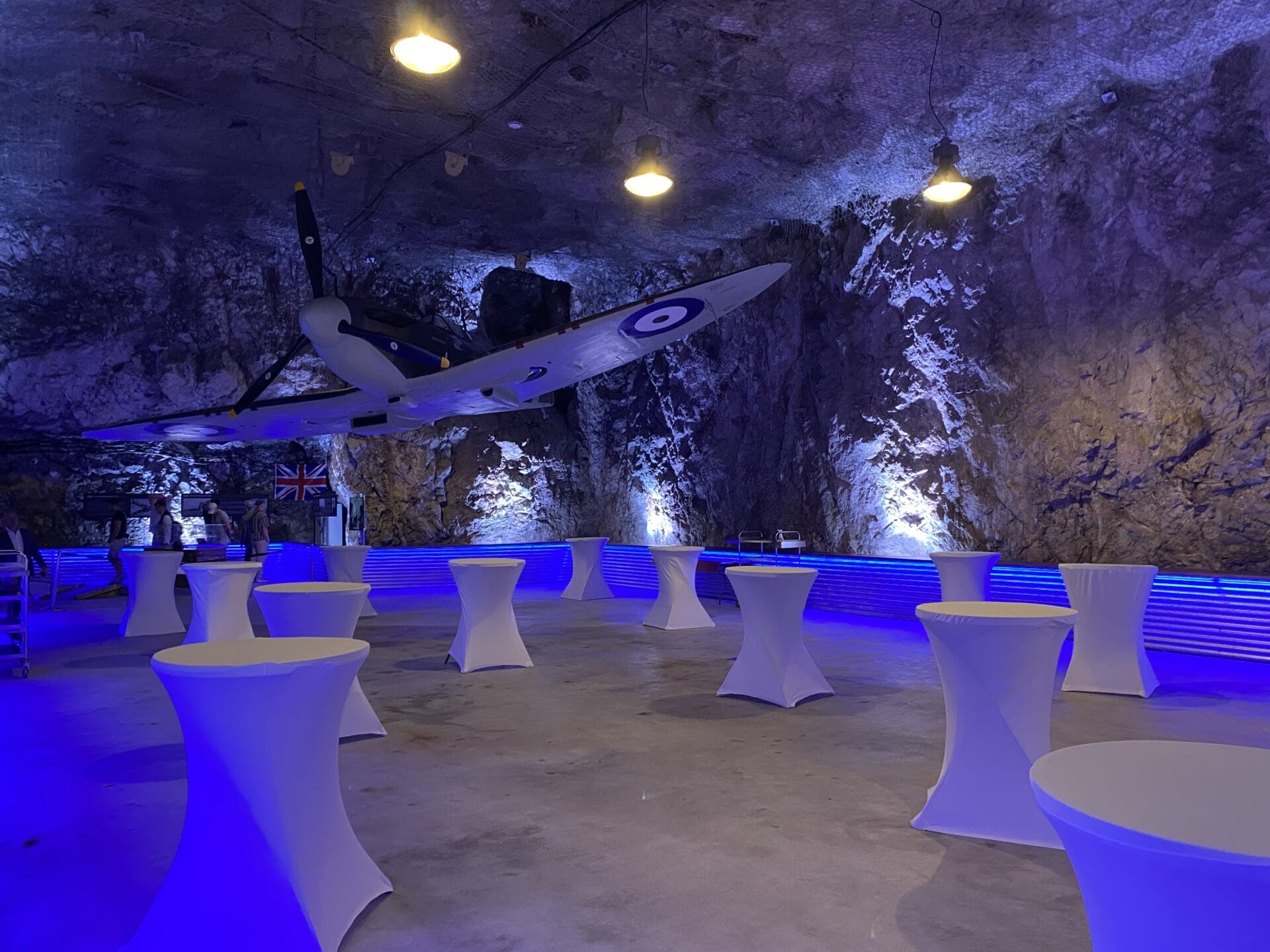 Nestled within Gibraltar’s historic WWII tunnels, The Spitfire Hall is a particularly unique events space. Originally an active REME (Royal Electrical and Mechanical Engineers) workshop during the Second World War, it now stands as a testament to wartime ingenuity.